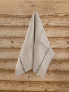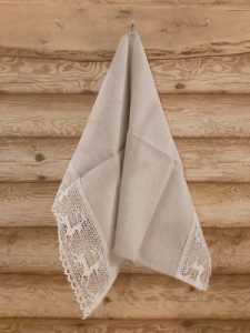 Lina dvielis 45x70cm ar pelēku lina mežģīni-zvaniņi