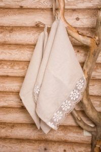 Lina dvielis 45x70cm ar lina mežģīni-baltas puķes