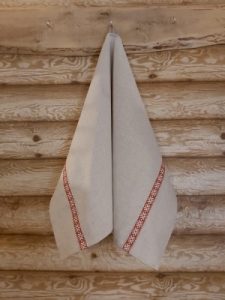 Lina dvielis 45x70cm ar sarkanbrūnganu tautisku lentu