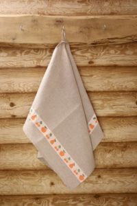 Lina dvielis 45x70cm ar dekoratīvu lentu – āboli un ķirši