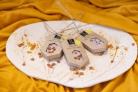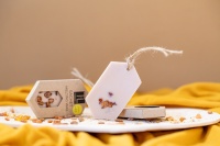 Estētisks un dabisks aromatizētājs telpām vai drēbēm no sojas vaska ar liepzieda - medus aromātu, izrotāts ar dzintara gabaliņiem.