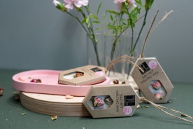 Estētisks un dabisks aromatizētājs telpām vai drēbēm no sojas vaska, izrotāts ar rožu pumpuriem.