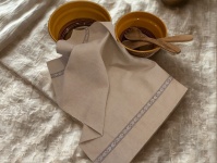 Lina dvielis 45x70cm ar pelēkbaltu 1.5 cm platu tautisku lentu abās sānu malās