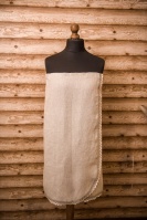 Lina auduma pirts kleita ar lipekļa aizdari augšdaļā un muguras daļā no viena sāna līdz otram sānam iestrādāta 2 cm plata gumija. Apkārtmērs augšdaļā izstiepjot gumiju līdz ~102 cm.
