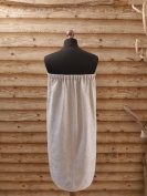 Apkārtmērs augšdaļā izstiepjot gumiju līdz ~102 cm. Sieviešu pirts kleitai garums ir 80cm.
