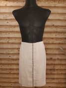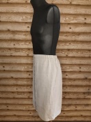 Vīriešu pirts svārki ar 1 cm platu pelēkzaļu tautisku lentu vertikāli un ar 2 lipekļa aizdarēm priekšpusē.
