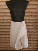 Izmērs pirts svārkiem: M-L (izstiepjot gumiju pat līdz XL). Vīriešu pirts svārku garums ir 60cm. Apkārtmērs vidusdaļā izstiepjot gumiju līdz pat ~102cm