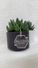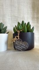Elegants, caurspīdīgs piekariņš ar personalizētu gravējumu – vārdu, iniciāļiem vai īpašu datumu.