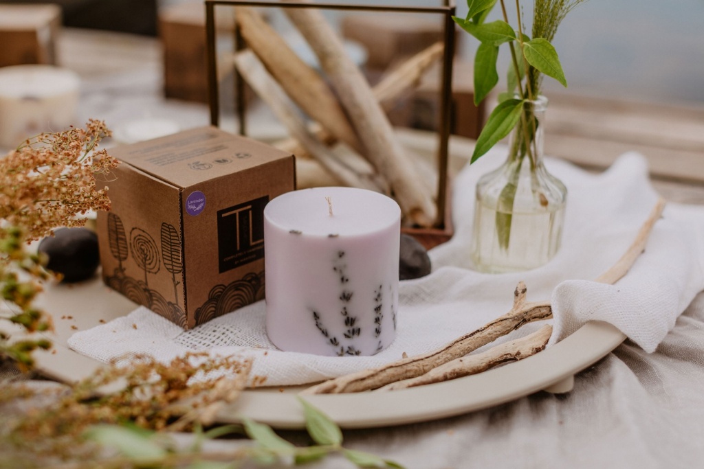 SOJAS VASKA SVECE AR LAVANDAS AROMĀTU - LILLĀ (XL)
